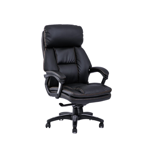 כיסא מנהלים גבוה יוקרתי ונוח לישיבה ממושכת מנגנון סינכרוני ידיות קבועות ריפוד דמוי עור איכותי רגל ניילון שחור מתאים למנהלים עובדים חדרי ישיבות ועוד